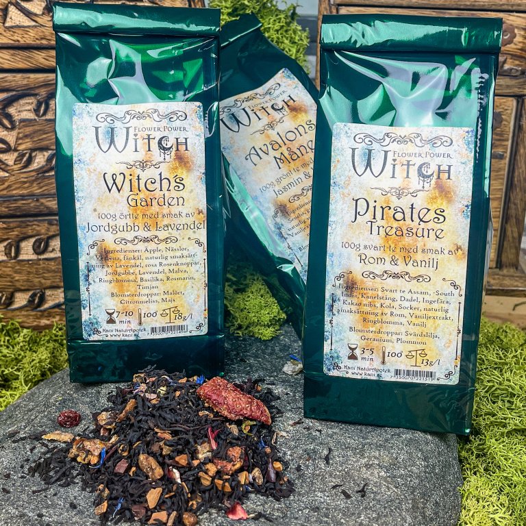 När jag vill fokusera på min medialitet använder jag gärna mitt Flower Power Witch te ”Sparkling Witch” eller ”Avalons Måne”. Båda teerna passar utmärkt om man är en Coven (magisk grupp som träffas regelbundet för att göra magi tillsammans) eller om man firar fullmånen på egen kammare. Sparkling witch är lite mer upplyftande och örterna som finns i inspirerar till magi. Örterna i Avalons måne jobbar lite djupare och upplevs av vissa som mer drömmande. Sigilljusen ”Witches Brew” och ”Oracle Vision Candle” är fina ljus att tända vid magiskt arbete.